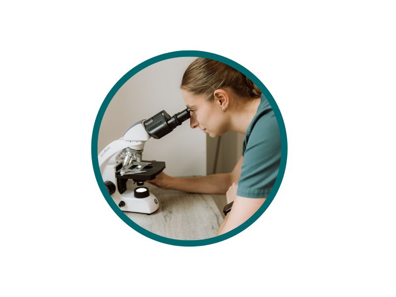 Met behulp van microscopie (een microscoop) kunnen parasieten, afkrabsels en uitstrijkjes in de praktijk bekeken worden. Bij onduidelijkheid wordt er samengewerkt met een specialist in een extern labo.
